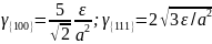 Каждый атом в таком ГЦК кристалле имеет координационное число 12. Каждый поверхностный атом на грани {100} будет иметь 4 оборванные химические связи, а поверхностная энергия для плоскости {100} может быть посчитана с помощью формулы (2):