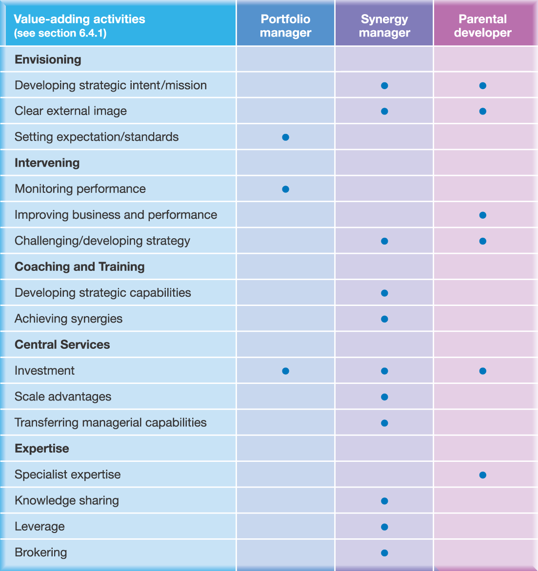 eeks to employ its own competences as a parent to add value to its businesses |