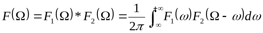 Интеграл в правой части и называется сверткой спектров. Т. о. показано то, что спектральная характеристика свертки равна произведению спектральных плотностей свертываемых функций, а свертка спектральных плотностей равна спектральной плотности произведения функций.