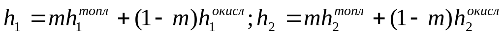 где индексы «топл» и «окисл» относятся соответственно к топливу и окислителю, а m— массовая доля топлива в горючей смеси.