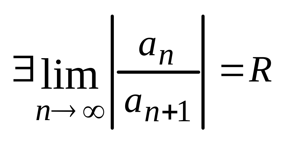 Интервалом сходимости степенного ряда является такой интервал от –R до R, что для всякой точки х, лежащей внутри этого интервала, ряд сходится и притом абсолютно, а для точек х, лежащих вне его, ряд расходится. Число R называют радиусом сходимости степенного ряда.