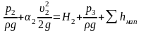 Запишем уравнение Бернулли для потока жидкости в напорном трубопроводе, т. е. для сечений 2-2 и 3-3: