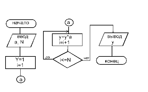 Пример: Блок-схема вычисления значения у = аN.