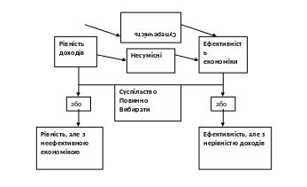 Рис. 1.1 Суперечність між рівністю і ефективністю в ринковій економіці