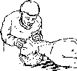 - •Реанимация при клинической смерти, а —закрытый массаж сердца; б— искусственная вентиляция легких.