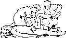 - •Реанимация при клинической смерти, а —закрытый массаж сердца; б— искусственная вентиляция легких.