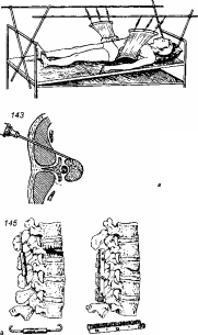 - •134. Скелетное вытяжение при переломах плюсневых костей и фаланг пальцев стопы по д. И. Черкес-заде (а) и остеосинтез плюсневой кости спицей (б).