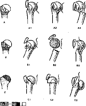 - •Типичные смещения отломков бедренной кости.