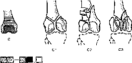 - •121. Остеосинтез латерального мыщелка большеберцовой кости конструкцией ао (а) и наружный остеосинтез переломов мыщелков большеберцовой кости (б — г).