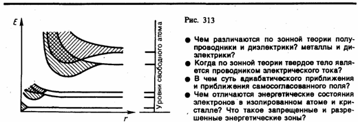 В результате сближения атомов на энергетической шкале вместо отдельных уровней появляются энергетические зоны, т. е. области таких значений энергии, которыми может обладать электрон, находясь в пределах твердого тела. Чем больше зависимость степени связи электрона с ядром, тем меньше расщепление уровня, тем уже зона.