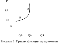 График функции предложения представляет собой возрастающую кривую SS (рисунок 3). С повышением цены на продукцию (Ра > Рв) ее предложение на рынке увеличивается (Qа > Qв).