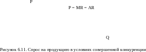 В условиях совершенной конкуренции фирма не может повлиять на цену реализуемого на рынке продукта и предлагает любое его количество по одинаковой цене Р. При этом увеличение реализации продукта на каждую дополнительную единицу – предельный доход МR, будет равен цене Р. Вместе с тем цена Р равна величине среднего дохода фирмы (6.12), т.е. Р=АR. Графически эти условия представлены на рисунке 6.11. В условиях совершенной конкуренции фирма может выбирать только оптимальный объем продажи, который обеспечит наибольшую прибыль.