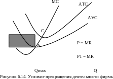 – условие прекращения деятельности Р≤AVCmin (рис.6.14, т.А).