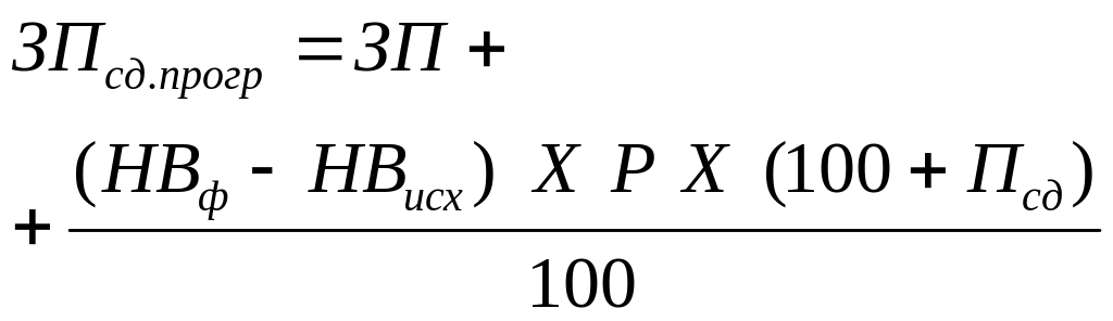 ЗП – заработная плата за исходную величину продукции по обычным расценкам (ден. ед.); НВф, НВисх – соответственно величина нормы выработки продукции фактической и исходной; Р – обычные расценки на изготовление продукции (работ, услуг) (ден. ед.); Псд – увеличение сдельной расценки (%) |