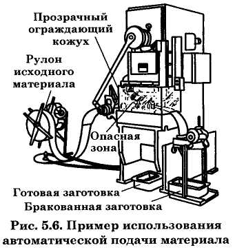 Автоматическая подача. Обрабатываемый материал автоматически подается с роликов или других механизмов подачи машины.