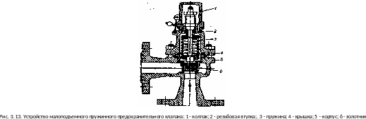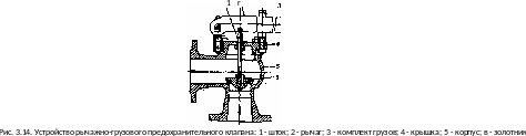 Наиболее простыми по устройству являются пружинные (рис. 3.13) и рычажно-грузовые (рис. 3.14) предохранительные клапаны.