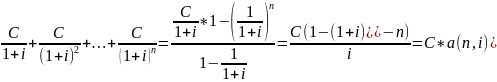 Это поток одной и той же суммы С, поступающий раз в год в течении n лет (при постоянной ставке процента i)