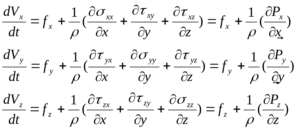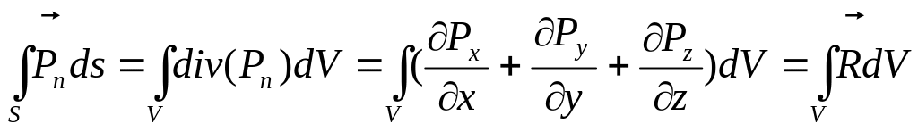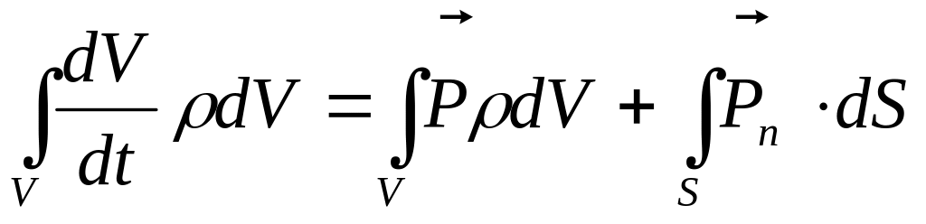 В такой форме уравнение количества движения записывается для сплошной среды и называется уравнением движения в напряжениях в интегральной форме. Уравнение справедливо для непрерывных и разрывных функций внутри выделенного объема.