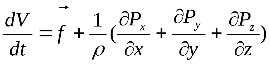 Производная по времени количества движения объема V сплошной среды равна сумме всех действующих на него массовых и поверхностных сил.