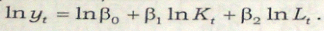 За допомогою стандартних математичних перетворень можна велику кількість моделей звести до множинної лінійної регресії. Наприклад, розглянемо виробничу функцію Кобба-Дугласа