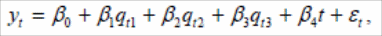 3 q – фіктивна змінна, що приймає значення 1, якщо розглядається третій квартал року, 0 – в інших випадках,