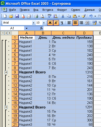 СОВЕТ. Если требуется удалить из электронной таблицы промежуточные итоги, в меню Данные щелкнитеИтоги, затем выполните команду Удалить все.