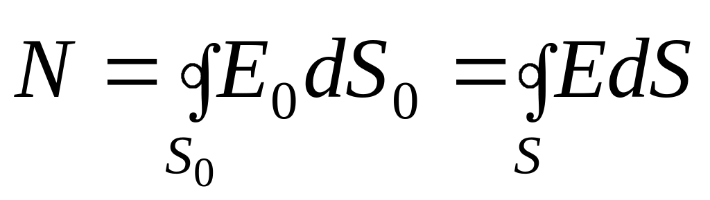 Доказательство. Пусть поле возбуждается зарядом q (см. рис. 2.9). Окружим этот заряд сферической поверхностью S0 с центром на заряде и любой другой поверхностью S. Обе поверхности пронизывает одно и то же число силовых линий, поэтому потоки вектора через поверхности будут равны