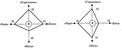 В этом случае установка «стремлюсь» проявляется на эмоционально-волевой основе, актуализируя ресурсы личности. У работника возникают мотивы: «докопаться до основной причины», «найти оптимальное решение», «наметить перспективу», «помочь фирме», «получить удовлетворение», «заслужить признание», «быть ключевой фигурой». Это модель творческой самореализации личности в ее деловом поведении (рис. 11.6).