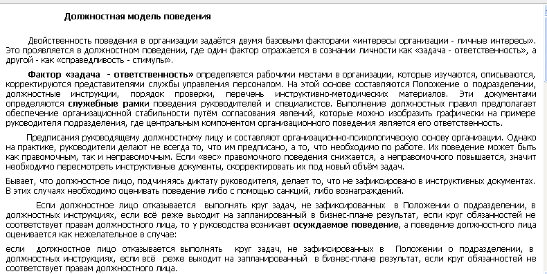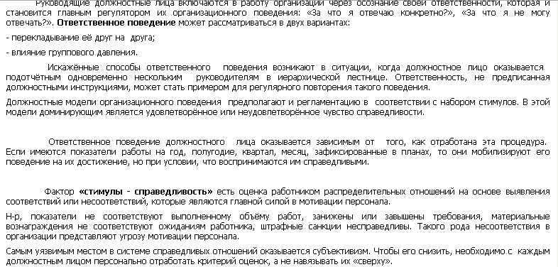 Эти стереотипы оказываются ориентирами поведения как управляющего, так и управляемого персонала. Эти четыре стереотипа «задают» четыре сегмента организационного поведения (рис.1), которые и определяют состояние человека работающего: ригористический (подчинение служебному долгу); автономный (свобода организационного маневра); мобилизационный (психологическая готовность к работе); прессинговый (подчиненность рабочим операциям во времени и в пространстве).
