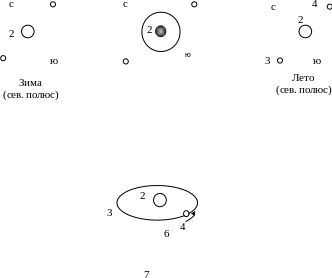 Экватор наклонен к плоскости эклиптики на 23o27’, благодаря этому обстоятельству на земле происходит смена сезонов.