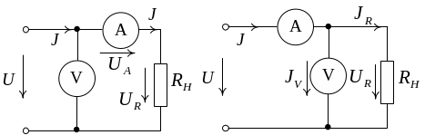 Рисунок 2.2 – Измерение электрического сопротивления методом вольтметра-амперметра