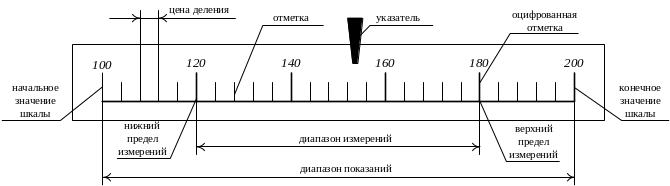 На примере равномерной шкалы, приведенной на рисунке 2.14, проиллюстрируем основные понятия, также относящиеся к эксплуатационным характеристикам средства измерения.