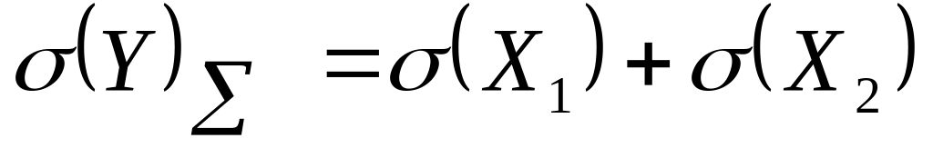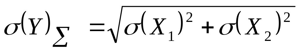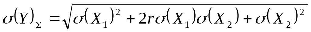 В большинстве практических случаев мы имеем дело с косвенными измерениями, в которых участвуют только два прямых измерения. Согласно теории вероятностей среднее квадратическое значение отклонения суммы двух величин от её математического ожидания вычисляется по формуле
