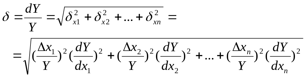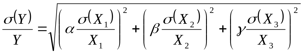Если измеряемая величина Y является функцией нескольких переменных Y= f( ), то абсолютная погрешность результата косвенных измерений будет равна