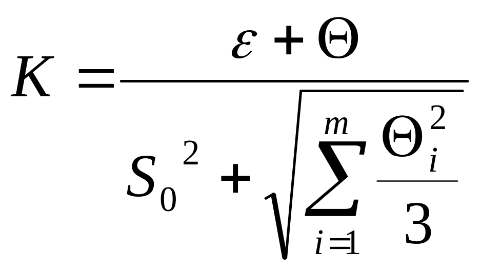 где K - коэффициент, зависящий от соотношения случайной и неисключенной систематической погрешностей; SΣ - оценка суммарного среднего квадратического отклонения результата измерения.
