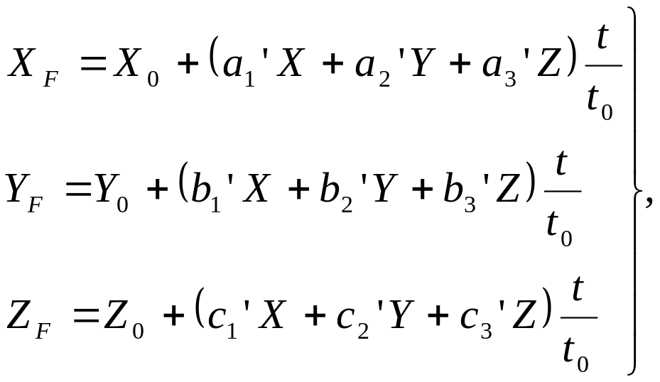 ai’, bi’, ci’ – направляющие косинусы углов, образованных осями X, Y, Z с осями XF, YF, ZF;