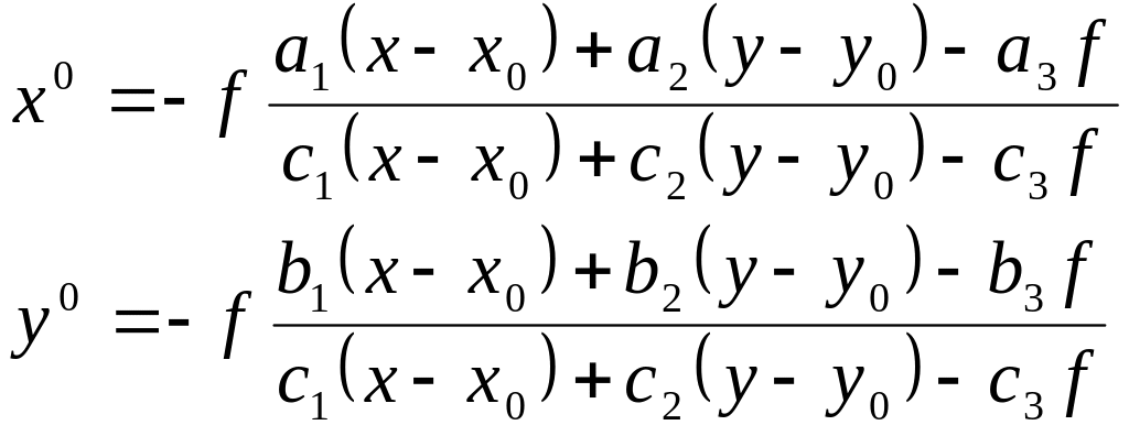 Пространственные координаты точки снимка связаны с плоскими координатами х и у зависимостями