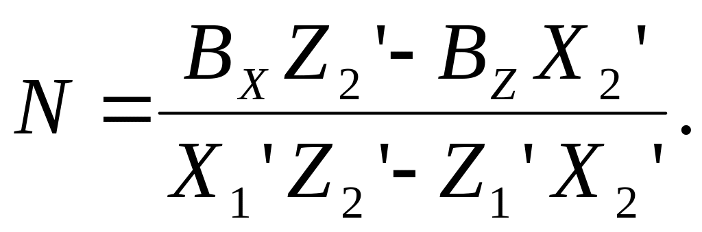Множитель N зависит от составляющих базиса фотографирования BX и BZ, а также от пространственных координат точки левого снимка (в системе S1XYZ) и соответственной точки правого снимка (в системе S2XYZ, параллельной S1XYZ)