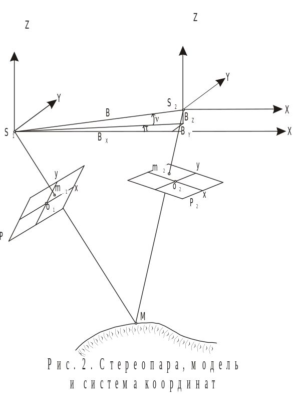 где X, Y, Z – координаты точки местности в системе координат XYZ с началом в левой точке фотографирования (рис. 2);