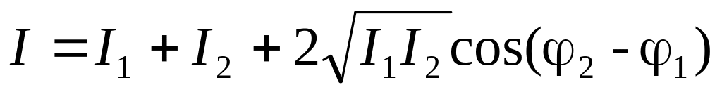 где (φ2 – φ1) – разность фаз колебаний. Поскольку интенсивность света I пропорциональна квадрату амплитудного значения Е, то