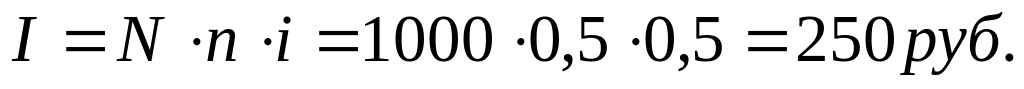 Решение.N=1000 руб.; i=0,5; n=0,5.