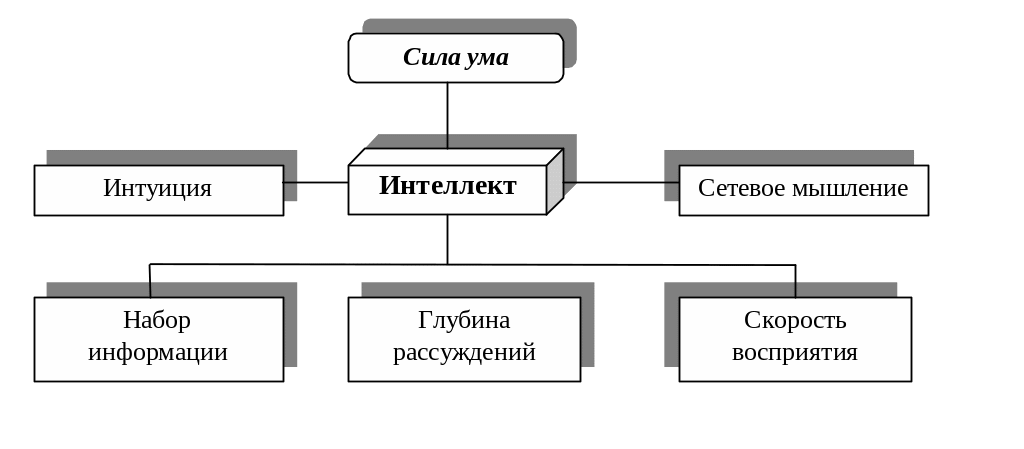 С другой стороны управление организационными знаниями основано на интеллекте (рис. 2.25), обучении (рис 2.26), культуре (рис. 2.27) организационной структуре и инфраструктуре фирмы (рис. 2.28). Основы управления знаниями интеллектуальной организации иллюстрирует рис. 2.29.