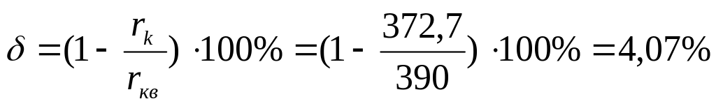 rк = rкв - λ·Мк= 390– 0,02·790,1=372,7мм