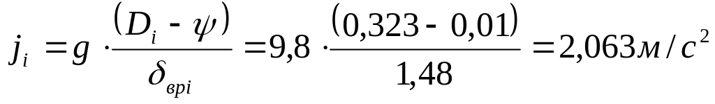 Знаходимо падіння прискорення на максимальній передачі при ψ=1,2Dmax