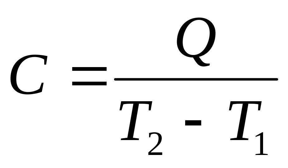Опр.3.4.7. Средней теплоемкостью С тела в интервале температур от T1 до Т2 > T1 называется отношение тепла Q, необходимого для повышения температуры тела от T1 до Т2 к разности температур Т2 - T1: