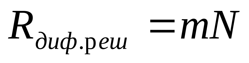 Таким образом, разрешающая способность дифракционной решетки пропорциональна порядку т спектров и числу N щелей, т. е. при заданном числе щелей увеличивается при переходе к спектрам высших порядков. Современные дифракционные решетки обладают довольно высокой разрешающей способностью (до 2∙105).