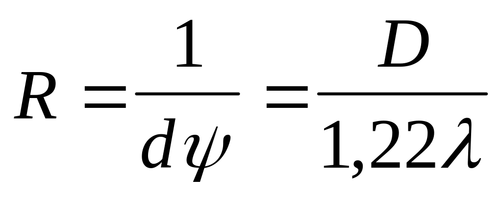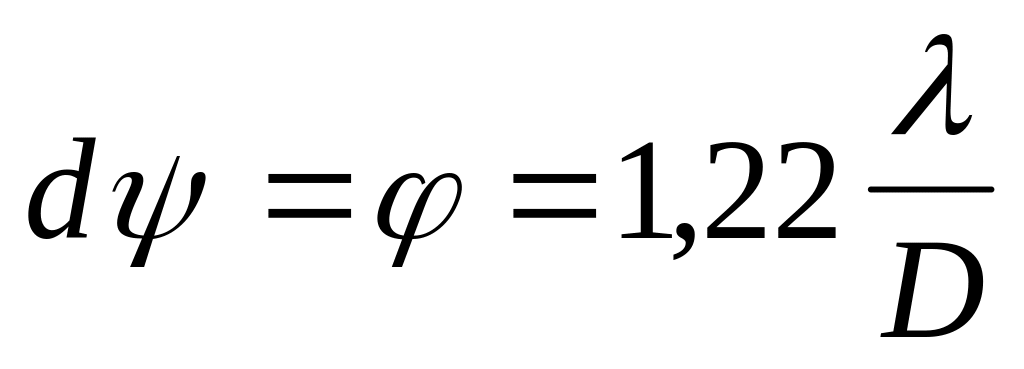 где — наименьшее угловое расстояние между двумя точками, при котором они еще разрешаются оптическим прибором. При выполнении критерия Рэлея, угловое расстояние между точками должно быть равно :