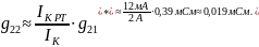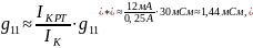 Зная значения тока коллектора в рабочей точке, рассчитаем низкочастотные g – параметры, для которых выполняется условие (малой величиной обратной проводимости передачи обычно пренебрегают и принимают ):