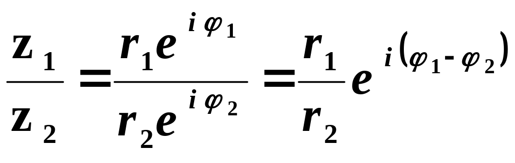 Якщо комплексні числа записані у показниковій формі, то дії множення, ділення та піднесення до натурального степеня виконуються за правилами
