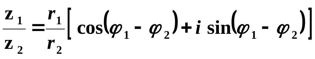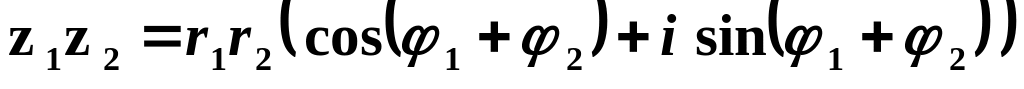 Така форма запису комплексного числа називається тригонометричною, а множення, ділення та піднесення до натурального степеня виконуються за формулами